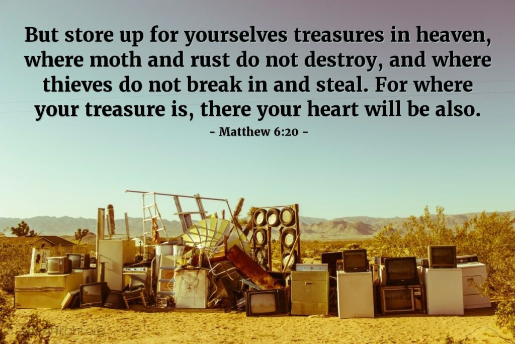 At some point, everything we own will end up in a junkyard or landfill. The final resting place for the things we accumulate, the things of this world, are temporary. When we die, we move on to eternity, but our stuff stays behind. Examine how we spend our money and our time; what do we dwell on? Is God at the center of it all?
